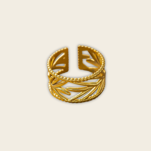 Su diseño calado, con detalles perlados en los bordes, envuelve tu dedo con ligereza y distinción.