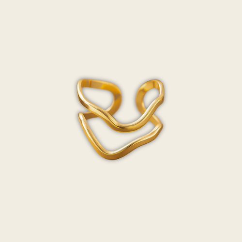 Ondra es un anillo de diseño abierto que fusiona curvas irregulares con estructura minimal.