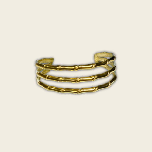El Brazalete Bambusa se inspira en la belleza del bambú: una planta flexible, fuerte y con una simbología ancestral ligada a la armonía y el crecimiento. Esta pieza de tres líneas envuelve tu muñeca con un diseño orgánico y sutilmente exótico que conecta elegancia y naturaleza.