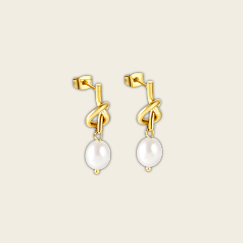 Los Pendientes Alhena combinan la fuerza del acero inoxidable con la suavidad de la perla, creando una pieza que habla de elegancia sin esfuerzo. El diseño de nudo dorado, que fluye hacia la delicadeza de una perla colgante, evoca la belleza de los vínculos auténticos y el estilo sin artificios.