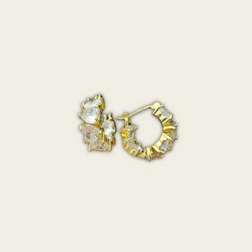Fabricados en plata de ley 925 y adornados con circonitas en talla corazón, estos aros abrazan el lóbulo con un brillo intenso y femenino.